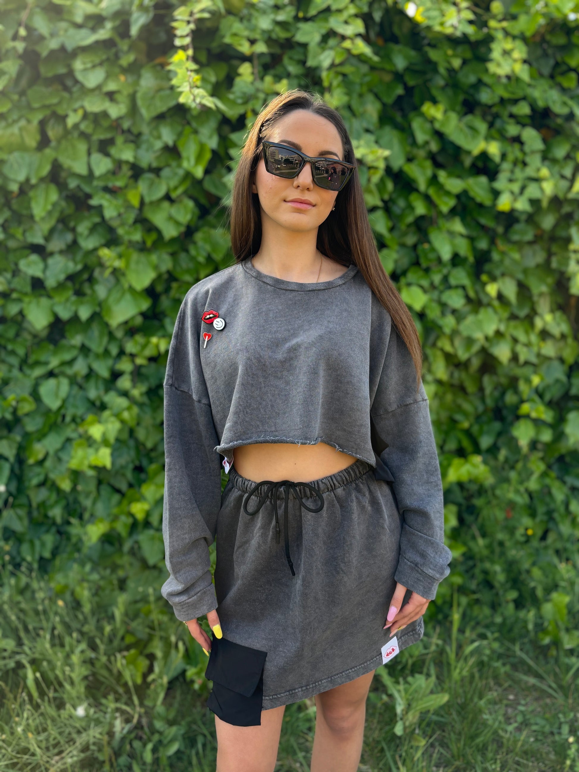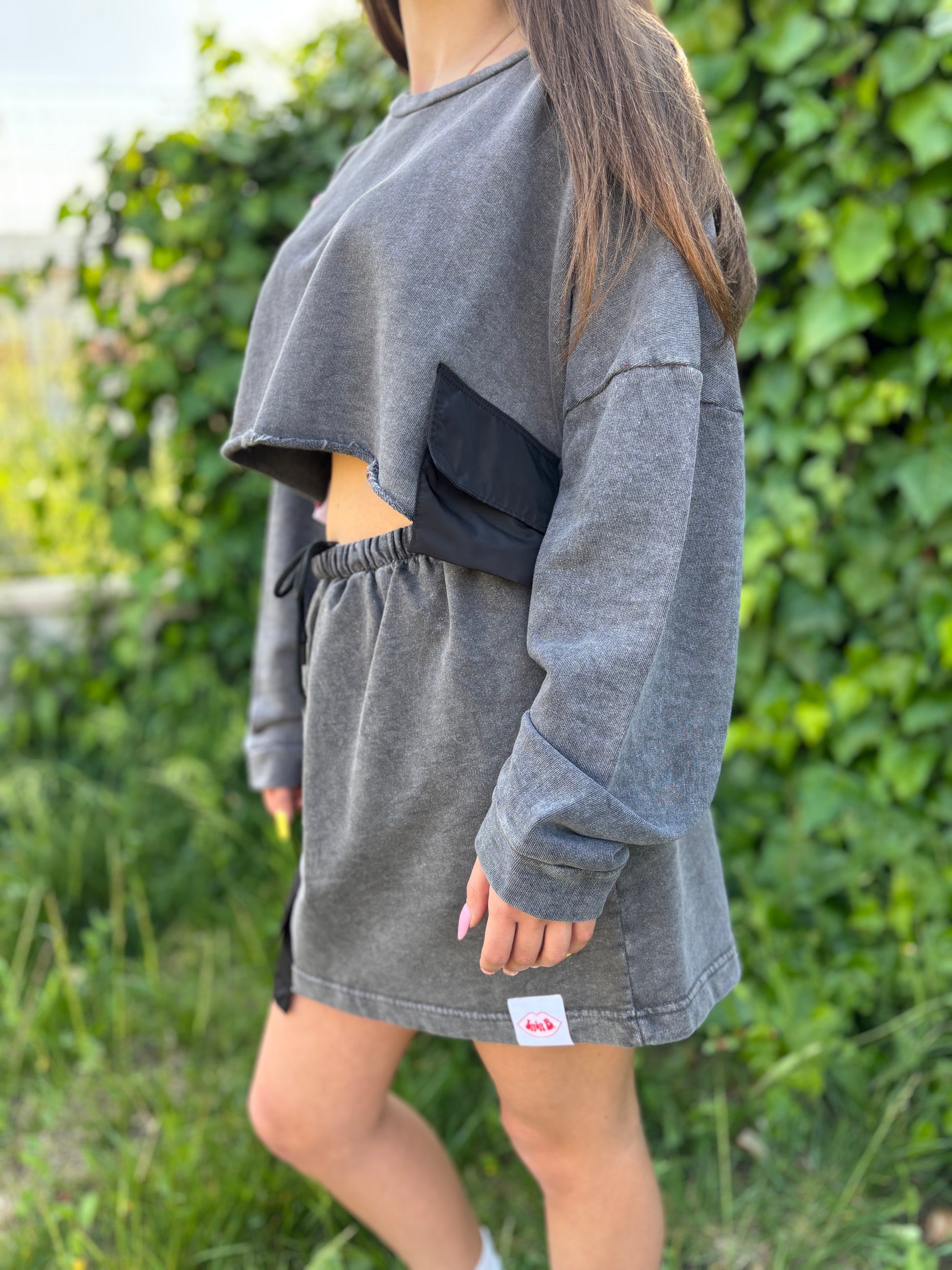 Gonna regolabile con lacci + Felpa cropped.